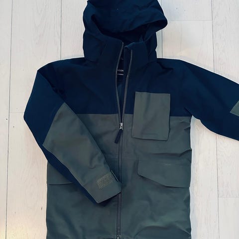 Vähänkäytetty nuorten parkatakki. Paljon taskuja, vedenpitävä tekninen materiaali. Irroitettava huppu.