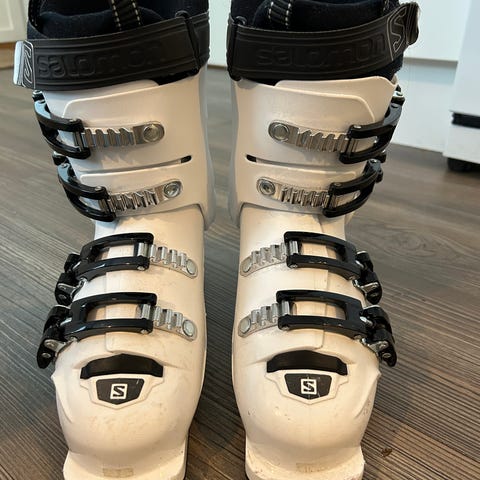 Salomon laskettelu monot mondo kokoa 22-23,5 eli noin jalalle 220-235mm. Käytön jälkiä päällä mutta hyvässä kunnossa sisältä ja ehjät