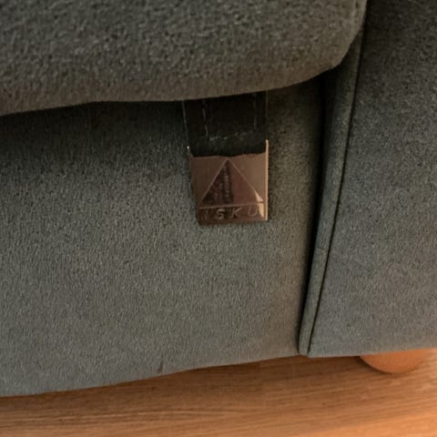 Iskusta 2022 ostettu sohva (ovh oli tuolloin n. 1200 euroa). Sohva ei ole Iskun omaa Suomessa olevan tehtaan tuotantoa.