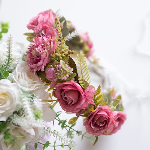 Pienempi seppele, sopii lapselle tai aikuiselle puolen pään seppeleeksi. Nauhakiinnitys.