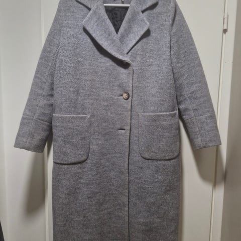 Vähälle käytölle jäänyt villakangastakki 42(40). Irrotettava keinoturkiskaulus.