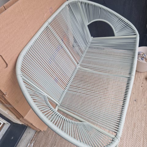 Myydään kun meidän uudelle parvekkeelle liian iso,istuintyynyt sekä selkätyynyt ovat säänkestäviä ja juuri kuukausi sitten pesty tekstiilipesurilla.