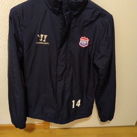 Warrior unisex takki, koko 158 S-Kiekon logolla. Takissa on useita painettuja logoja ja tekstejä eri puolilla vaatetta. Väri musta. Soveltuu monenlaiseen käyttöön.