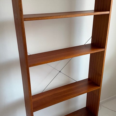 Tiikki tiikkinen retro vintage hyllykkö avohylly avohyllykkö hyllyt vitriinikaappi vitriini