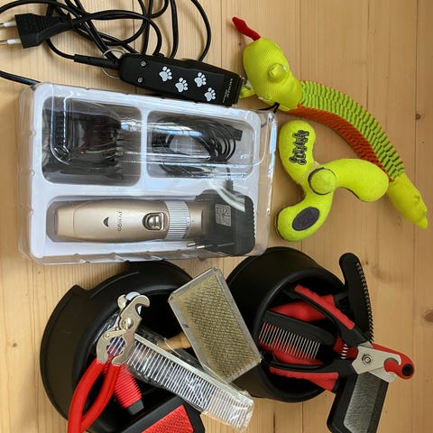 Lajitelma koiratarvikkeita, olleet westietytöillä.