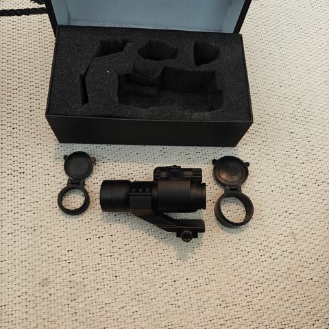 Swiss Arms minidot punapistetähtäin. Sopii esim. Airsoft-aseisiin tähtäimeksi. Mukana linssinsuoja ja kuusiokoloavain tähtäimen kiinnittämistä varten. Muutaman kerran käytetty.