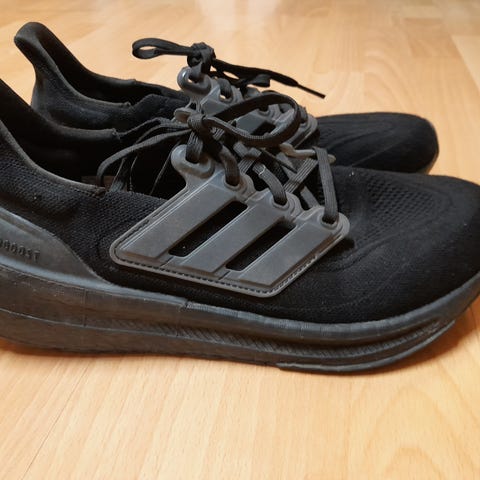 Adidas juoksukengät, koko 44, musta väri. Sopivat juoksuun ja muuhun urheilukäyttöön. Kengät ovat hengittävää materiaalia ja tarjoavat tukea juoksun aikana.