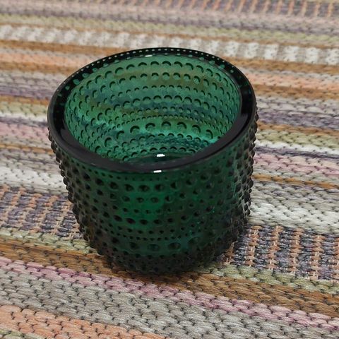 Myydään kaapin perältä ehjä ja naarmuton smaragdi Iittalan kastehelmi kynttilälyhty.
