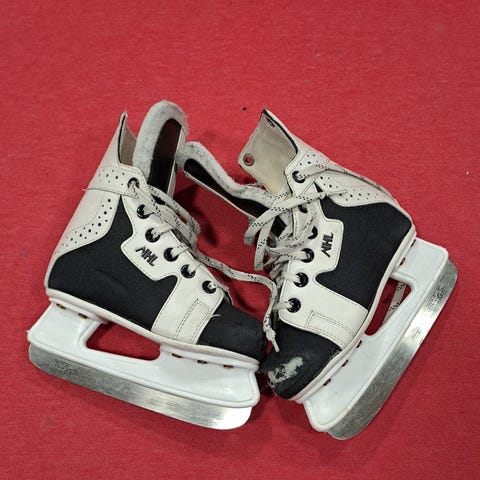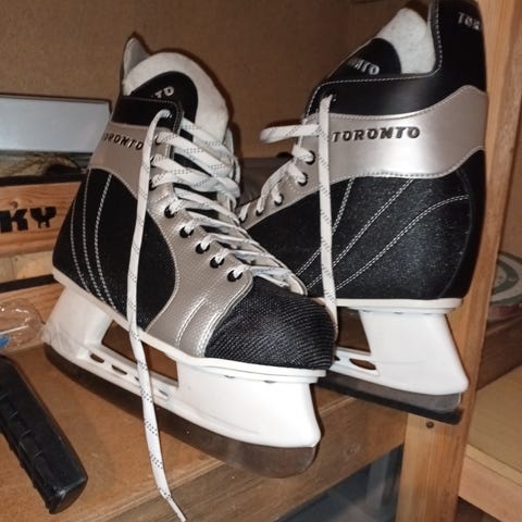 Luistimet koko 37. Huomio. Molemmissa terissä halkeama samassa kohtaan? On ollut luistelukäytössä siitä huolimatta, mutta nyt liian pienet pienet.