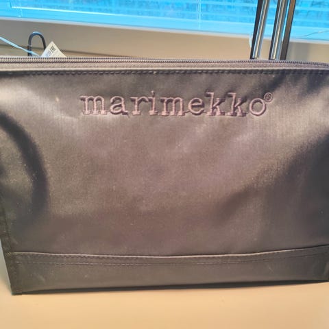 Myydään Marimekon Nuuka-L pesupussi. Kuviona sininen Nimikko, materiaalina PVC. Koko n. 20x20x10 cm.