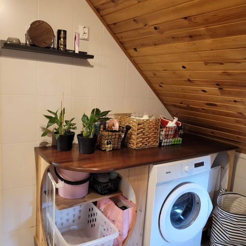 Annetaan valkoinen kylpyhuonekaappi remontin tieltä. Sisällä 4 lankakoria ja 2 hyllytasoa.