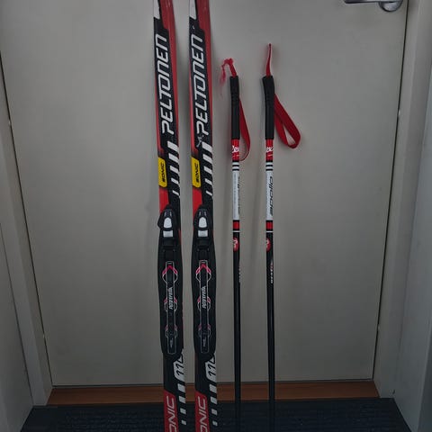 Myydään 140cm hiihtosukset ja sauvat