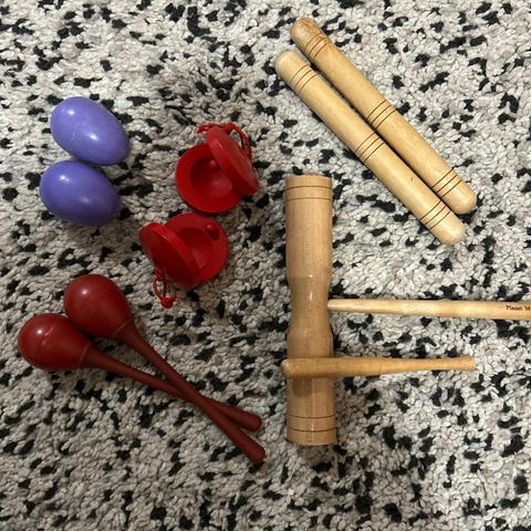 Monta erilaista merkittömiä rytmisoittimia sisältäen marakassit, triangelit, tamburiinit, kastanjetit, symbaalit, puu- ja metalliosia. Soittimet ovat eri kokoisia ja materiaaleiltaan puuta ja metallia. Ovat olleet käytössä lasten musiikkileikkeihin.
