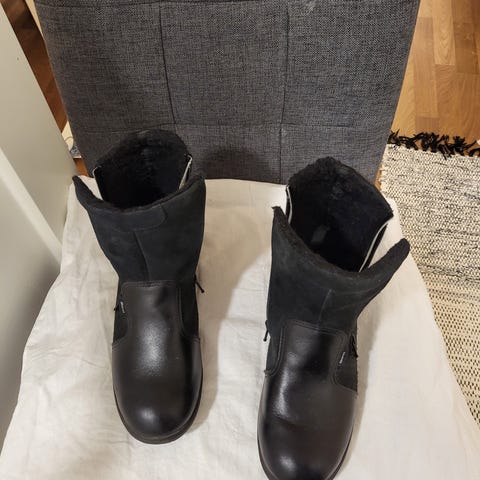 Muutaman kerran sovitetut ja ulkona kerran pidetyt. Sisäsyrjällä vetoketju . Alkuperäiset pohjalliset hukassa, laitoin Haltin uudet pohjalliset kenkiin. Sievi talvikengät koossa 39. Muutamia jälkiä kengissä näkyy, varmaan tullut säilytyksessä. En ole yrittänyt puhdistaa.