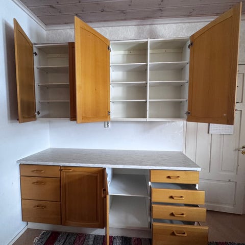 Kaappi valkoinen kippiovella.