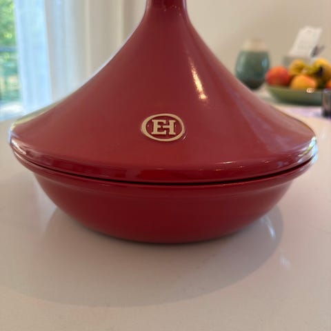 Keraaminen Emile Henry -pata. Melko vähän käytetty, kuitenkin pieniä käytön jälkiä pinnassa. Sopii hyvin ruoanlaittoon, hauduttamiseen tai esim. pataleivän tekoon.