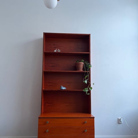 Vintage teak-kirjahylly kaapeilla ja laatikoilla