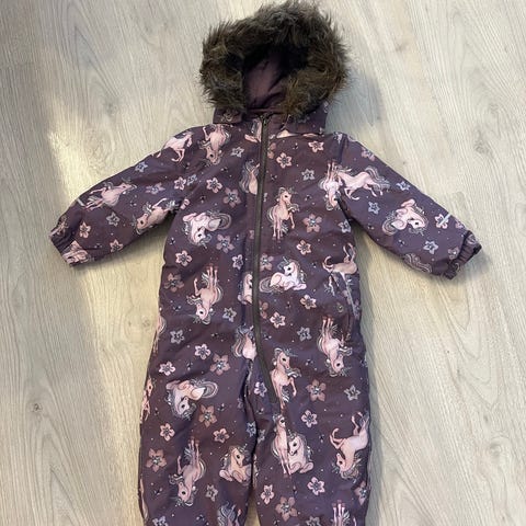 Uutena tälle talvelle ostettu, mutta tyttö otti kasvuspurtin ja tämä jäi pieneksi. Koska vähäluminen ja lämmin alkutalvi, ei tätä kauheasti oo keretty pitämään. Hyvä kunto. En ole pessyt. Polvien kohdalla näytti olevan likaa, ei pomppaa silmille.