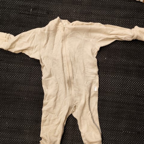 Makuupussi, toppahaalari, Lindexin 100% puuvillainen paita/takki, kahdet hansikkaat, töppöset, villasukat, hattu ja kypärämyssy. Hyvä käytetty kunto. Osa suoraan käytöstä ja loput pestyjä. Koko toppahaalarissa ja paidassa 74.