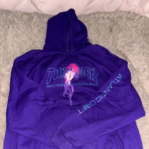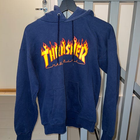 Hyvässä kunossa Thrasher huppari mustassa värissä, koko M. Hupparissa on Thrasher Magazine -logo edessä. Toimitan pihlajamäki aluelle tai lähetän postitse