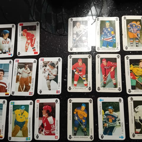 Erilaisia jääkiekon keräilykortteja eri pelaajilta. Kortit sisältävät pelaajien kuvat ja tiedot. Sopii keräilyyn ja harrastamiseen. Kolme nippua.