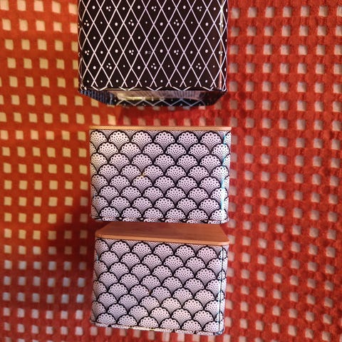 Myydään 3 kpl setti Ikean Kvarnvik säilytysrasioita, jotka menevät sisäkkäin. Suurimman rasian halkaisija 29 cm ja korkeus 15 cm, keskikokoisen halkaisija 22 cm ja korkeus 12 cm ja pienimmän halkaisija 15 cm ja korkeus 9 cm. Rasioissa pieniä käytön jälkiä.