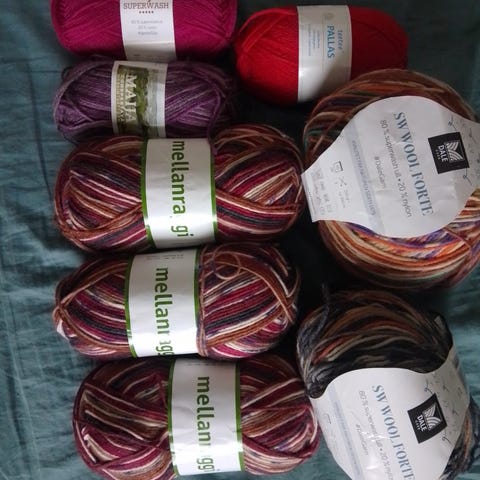600 g väreiltään yhteensopivia Socki-villasekoitelankoja