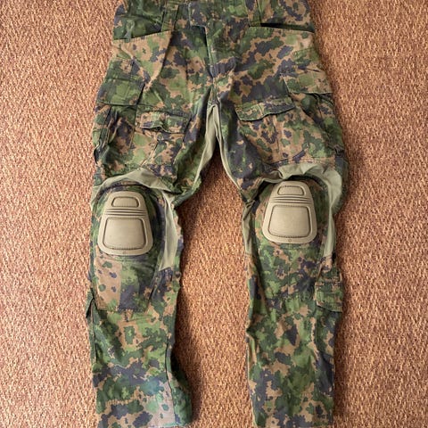 Crye M05 combat pants, koko 30S ja väri tuttu ja turvallinen M05. Haalistuneet/muutamia kertoja pesty ilman optisia kirkasteita sisältäviä pesuaineita. Pysyvää/pinttynyttä likaa ja muutamia ompeleita takapuolella auennut, näkyy kuvissa ja huomioitu hinnassa.