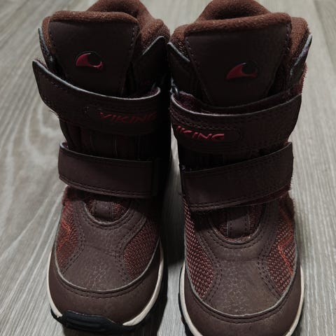 Viking lasten talvikengät tytöille, koko 28. Väri lila. Kengät on suunniteltu tarjoamaan lämpöä ja suojaa kylmillä keleillä. Yhdellä lapsella käytetty