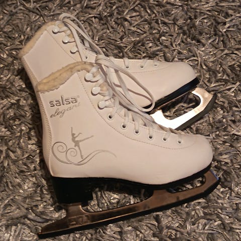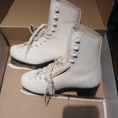 Myydään kuvien mukaiset Sabrina-merkkiset kaunoluistimet. Koko on 35. Luistimissa on lämmin vuori. Käytönjäljet näkyvät kuvissa ja siitä laitoin kunnoksi kohtalainen. Ulkoluisteluun ei ole välitöntä teroitustarvetta. Teräsuojat kuuluvat kauppaan.