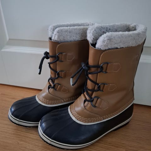 Hyvin vähän käytetyt Sorel Winter Carnival talvikengät kokoa 39. Vedenpitävät ja todella lämpimät, sisällä olevan huopaosan saa halutessaan irroitettua. Jääneet itselle pieniksi raskauden vuoksi. Koiratalous, joten irtokarvoja saattaa huopaosasta kengän sisältä löytyä, vaikka ne siistinkin mahdollisimman hyvin.
