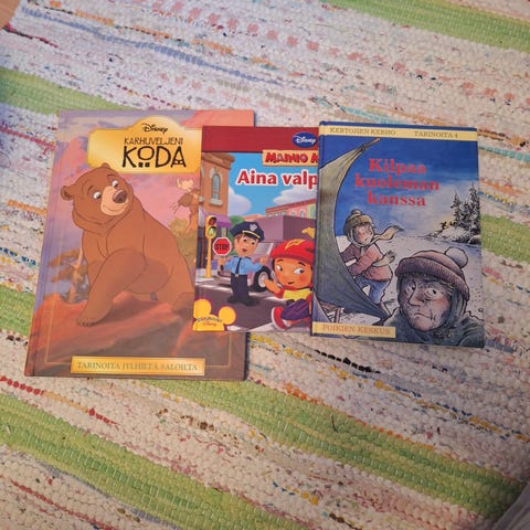 Kokoelma lastenkirjoja, jotka sisältävät erilaisia kuvakirjoja ja tarinoita. Kirjat ovat suomenkielisiä ja suunniteltu lapsille. Kirjojen aiheina ovat esimerkiksi eläimet, luonto ja erilaiset opettavaiset tarinat.