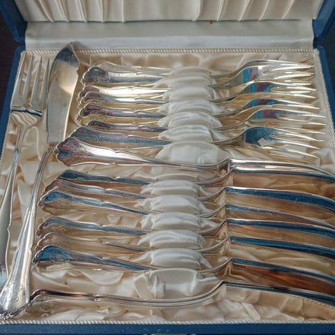 Myydään Chippendale kalaotin. Lahjaksi saatu - ei kaiverruksia. Käyttämätön. Hopea/ teräs.