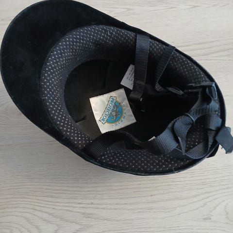 Myydään kuvan mipsillinen ratsastuskypärä. Kypärä soveltuu ratsastuksen aloittelioille.
