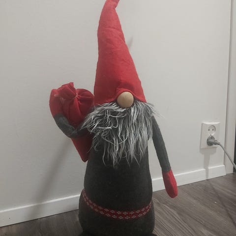 Vanhanaikaiset tonttunuket. Nukkejen korkeus noin 25 cm. Kasvot posliinia ja vartalo kangasta. Pysyvät istuallaan jos ne laittaa nojaamaan jotain vasten. Ps. Kuusenkoristeiksi ovat liian painavia, kuusi on vain kuvausrekvisiittana. 😊