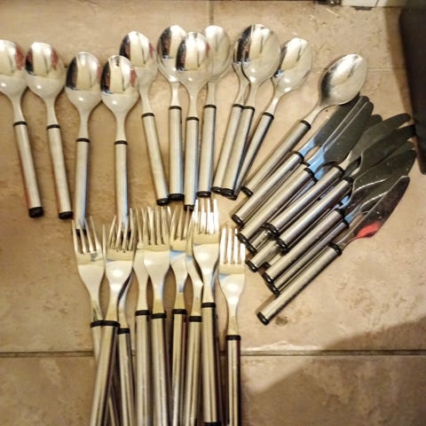 4kpl pikkulusikat käytössä olleet, joten normaali käytön jälkiä.