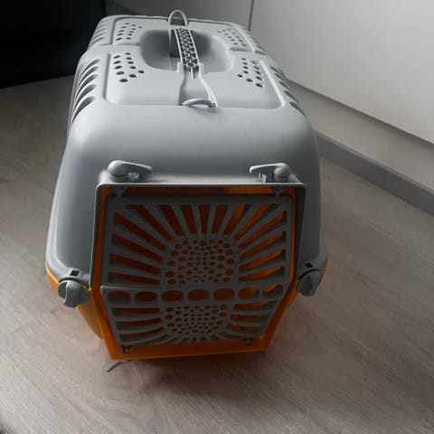 Matkakoppa lemmikeille, valmistettu muovista ja metallista. Sisältää kannen, jossa kantokahva, sekä metallisen etuoven. Sopii lemmikkien kuljetukseen ja tilapäiseen suojaan.