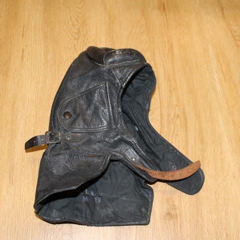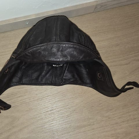 Nahkainen hyväkuntoinen lentäjänlakki.