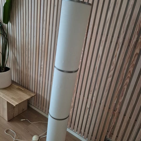 Käytettynä hankittu ja vähäiselle käytölle jäänyt lattiavalaisin. Kolmejalkainen, jalat kiinnitetään hakasilla tasaisesti. Pehmeä lämmin sävy niin valaisimessa kuin valossa. Korkeus 150 cm. Huom! Varjostimen sisäpuolella pari naarmua, katso kuva. Pölyä on.. Nouto ruoholahdesta.