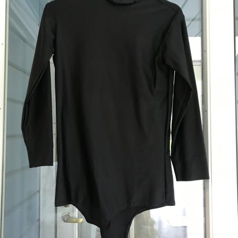 Myydään valkoinen vakiotanssi body pojalle/ miehelle. Edessä vyörärölle asti helminapit ja siitä haaraan saakka tavalliset napit. Etuosa ja hihansuut kovitettua kangasta muutoin body joustavaa ribbineulosta. Mukaan saa kovike kauluksen. Kauluksessa hieman väriä rusketustuotteesta.