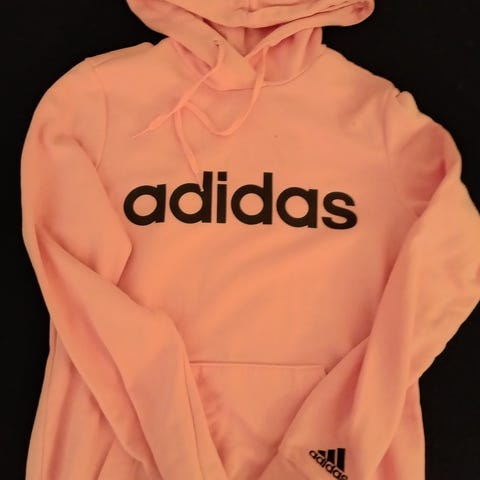 Myydään vaaleanpunainen Adidaksen pitkä huppari. Kokolappu puuttuu, käytetty S-M koossa. Muuten tosi hyväkuntoinen, mutta hupparin hupusta puuttuu nauha. Hupparissa taskut ja kaksipuolinen vetoketju.