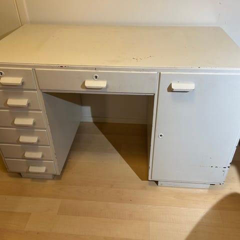 Tukeva, laadukkaasta materiaalista valmistettu pöytä. Luultavasti Askon tai Iskun tuotantoa 70-luvulta. Alkuperäisessä maalipinnassa kolhuja. Rungoltaan oikein hyvässä kunnossa.