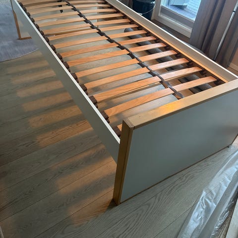 Myynnissä 2 kpl Muuramen Koivurengas sänkyjä. Toinen sänky purettuna.