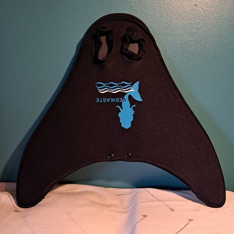 Lapsille tarkoitettu Vesikasteen merenneidonpyrstö vapaa-aikaan tai harrastukseen. Puvussa hieman pinttymää. Uimaräpylässä on molemmissa kulmissa kulumaa, mutta ei haittaa käyttöä. Koko 10/130-145 cm. Mukaan kuuluu lasten monofin uimaräpylä, joka vaaditaan käyttöön.
