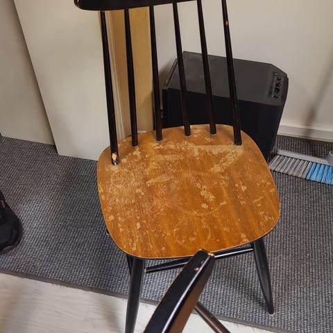 • 2 tuolia vaatii kunnostusta (korjausta/huoltoa – esim. liimauksia, pientä tukevointia ja pintahuoltoa)
