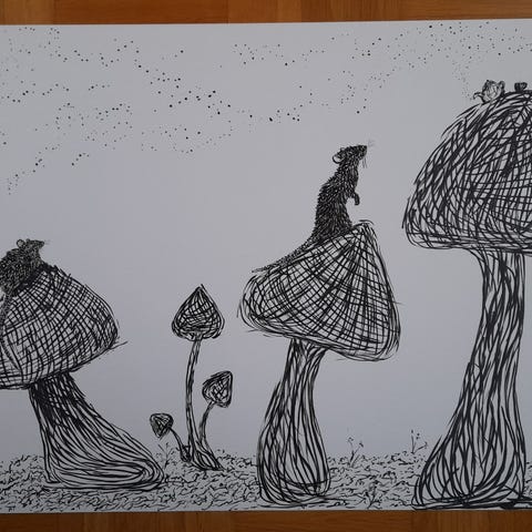 Kippis, A2 kokoinen (eli noin 42x60 cm) piirros paperille. Ei ole kehystetty.