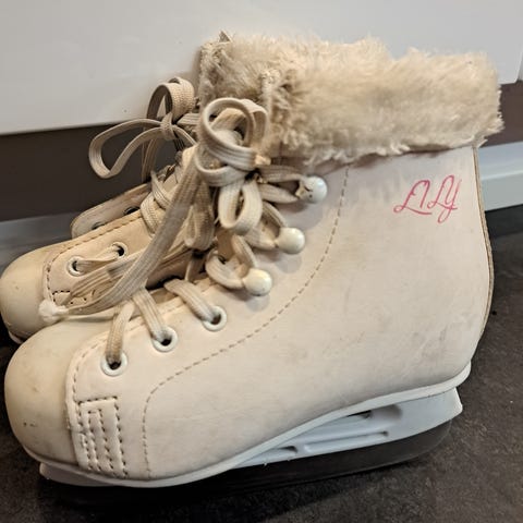 Myyntiin tytölle pieneksi jääneet luistimet. Käytönjälkiä löytyy siistit kuitenkin. Koko 29.