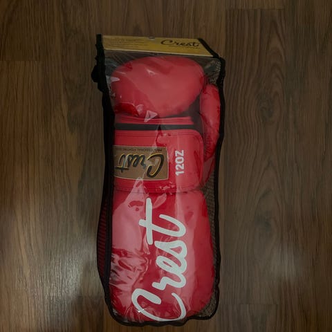 Crest Nyrkkeilyhanskat nuorille nyrkkeilijöille - tyylikäs ulkonäkö, paksu toppaus ja kestävä keinonahka. Pari kertaa käytetty, kuin uudet. Koko 8 oz.