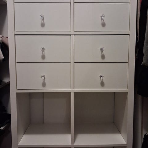 IKEA-kaappi, valkoinen väri. Soveltuu pienempien tavaroiden säilytykseen ja makuuhuoneen tai muun tilan kalusteeksi.