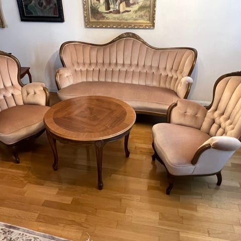 Siisti ja puhdas pieni Rokokoo divaani etsii uutta kotia.